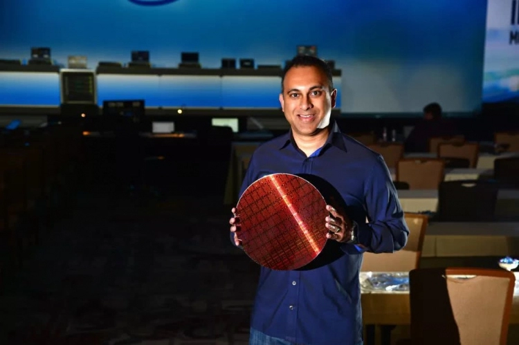 英特尔公司执行副总裁兼数据中心事业部总经理孙纳颐展示新一代英特尔至强处理器的晶圆
