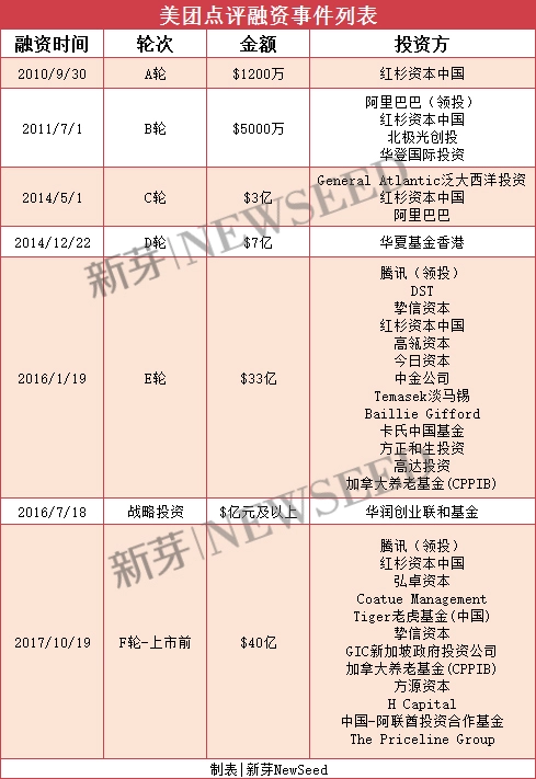 下附美团点评和摩拜单车融资列表,新芽NewSeed据公开资料整理: