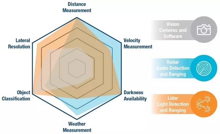 (图5)每一种传感技术都有其各自的优缺点,但只要有适当的传感器融合策略,它们就可以优势互补并弥补弱点。