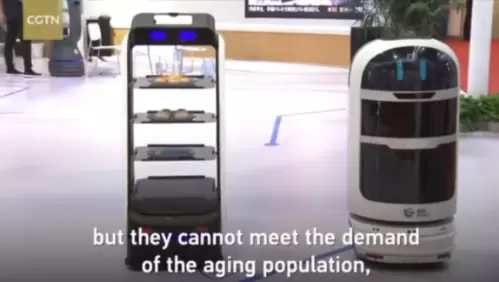 图为擎朗智能新品送餐机器人及酒店机器人2.0登陆CGTN