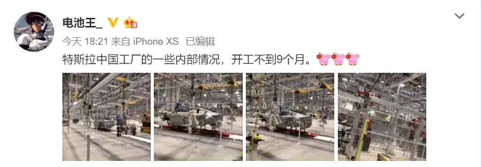 随后,这位博主还给出消息称,从今年1月7日开工至今,特斯拉上海工厂建造只有231天,不要拿传统汽车工业的速度来衡量这个工厂,今年内交付妥妥的。