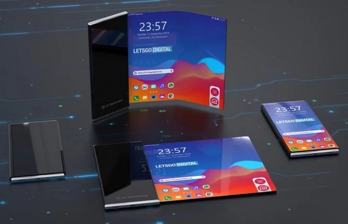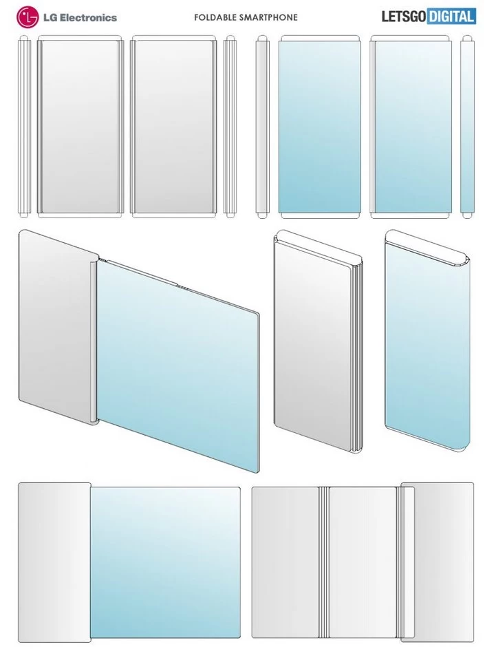 据Letsgodigital报道,近日发现了几款LG的折叠屏手机外观设计专利;包括字母“Z”形双折叠屏,向内三层折叠屏和上下折叠屏。目前又发现了LG脑洞大开的新设计:采用“易拉宝”设计,屏幕可以绕外壳约一圈。