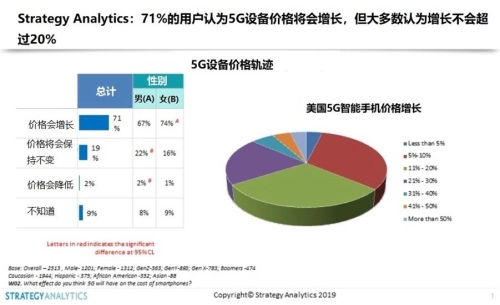 Strategy Analytics高级副总裁David Kerr表示,“四分之三的用户认为5G将提高智能手机的价格,三分之一的用户认为价格将上涨不到10%。现实是,2019年5G设备价格可能接近1000美元。今天只有约7%的买家花了这么多钱。”Kerr补充道,“该行业已经创造了一个5G问题,其中五分之一的人认为他们已经拥有5G手机。即便在苹果粉丝中,27%的人认为他们的旗舰设备已经是5G,尽管苹果还没有这样的设备。”
