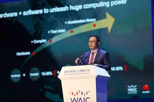 8月29日,在上海举办的2019世界人工智能大会(WAIC)上,华为常务董事、华为ICT战略与Marketing总裁汪涛发表了《重塑计算产业生态,加速人工智能发展》的主题演讲。