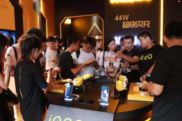 (图:活动现场首批“尝鲜”者体验iQOO Pro 5G手机)
