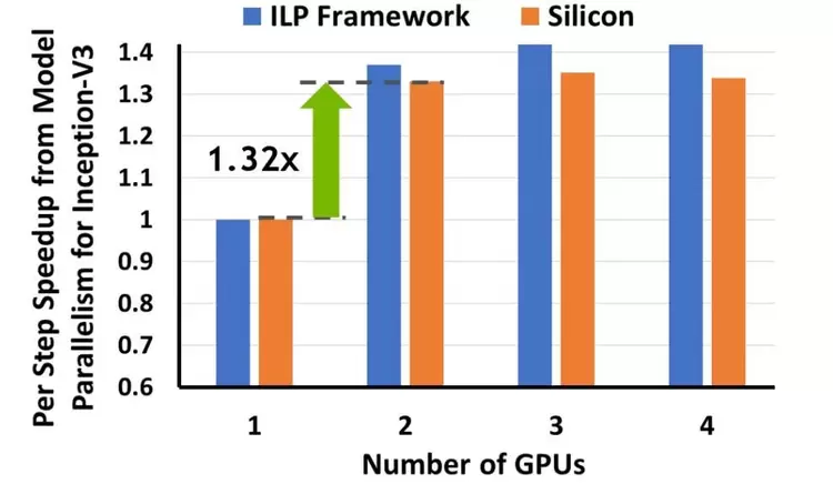 真实实验表明,在两个 GPU 的设置中获得的 1.32 倍模型并行加速在 DLPlacer 预测加速的上下 6% 的区间内。