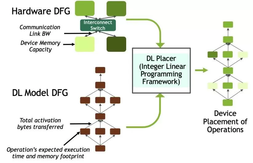 为此,该研究开发了一种基于整数线性规划 (ILP) 的设备布局工具——DLPlacer。该工具可以通过提取模型中不同操作之间的并行化来实现资源最大化利用,同时最小化计算节点间移动数据的通信开销。