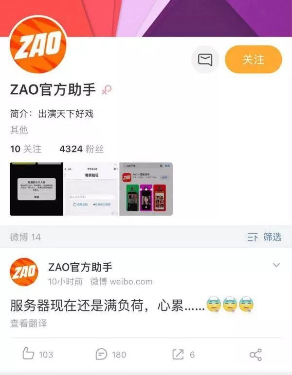 “AI服务器很贵很贵,只希望大家能给五星好评,并撰写评价,谢谢大家。”从ZAO官方助手的新浪微博可知,8月花700万租的服务器,当晚就已经消耗了三分之一,目前安卓用户可以在应用宝、华为、OPPO、vivo市场搜索下载。