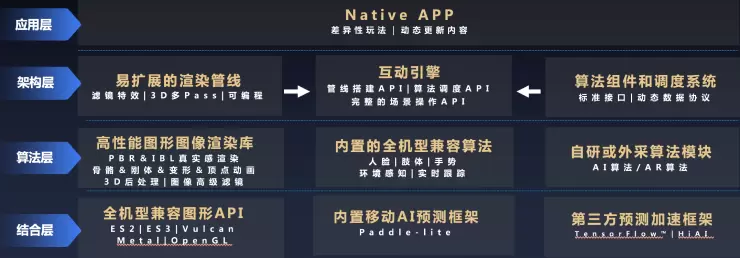 大多数厂商的短视频AR特效SDK是以一个黑盒的方式提供给开发者,开发者无法融入自己更多的算法和能力,无法灵活扩展迭代自己的需求,只能强依赖于供应商的迭代速度和基础能力。因此,为了降低使用门槛,让开发者们自主可控,百度DuMix AR平台对架构进行了整合和改造,确保开发者可以自主高效地进行能力和玩法扩展。
