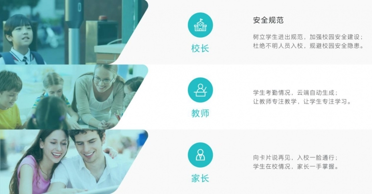 学生将逐渐告别门卡、胸牌,每天刷脸就可进出校园;同时家校两端可实时查看学生出入校园记录,大幅提升校园安全指数;针对校园访客,魔点也给出相应方案,校长/老师只需在线上发起访客邀请,访客即可在线上录入人脸,到访时刷脸就可免去纸质登记,刷脸进入学校。对于临时来访的家长,可出示身份证在智能硬件前进行人证比对,提高校园准入门槛,为校园安全保驾护航。