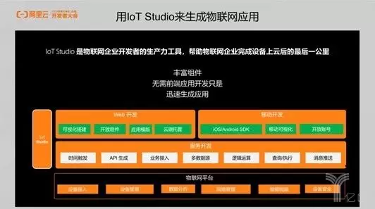 以阿里云最近更新的IoT Studio为例,它是一套专为物联网应用所设计的集成开发环境IDE,功能包括: