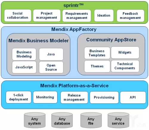 它由3个无缝集成的产品组成:Sprintr,AppFactory和Mendix Platform-as-a-Service,分别实现的功能如下: