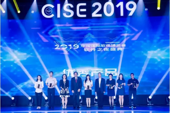 图1 第二十三届中国国际软件博览会“软件之夜”盛典“优秀产品”企业代表领奖