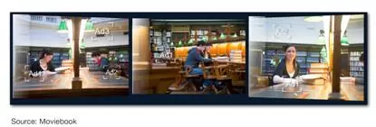 首先,在视频创建同时产生新的数字营销库存。对已经制作完成的视频内容,计算机视觉技术可以扫描镜头并识别投射的潜在位置,如空白桌,地面,墙壁甚至智能手机屏幕。通过识别关键过渡帧还可以计算新生产内容的时间长度,这种方法允许广电卫视形成可用于定位视频场景内的数字营销库存。