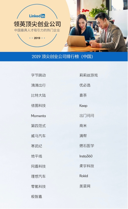 9月4日,全球最大的职场社交平台LinkedIn中国(领英)发布“2019年领英顶尖创业公司”排行榜,第四范式位列第六,与字节跳动、滴滴出行等共同被评选为“中国本土最具人才吸引力的顶级企业”之一。