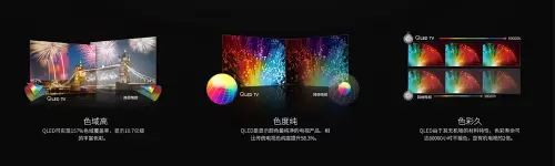 一直以来,QLED都拥有着非常优秀的色彩表现能力,QLED电视色域覆盖率高达157%,可以呈现10.7亿色彩表现,色彩纯净度相比OLED提升约37.5%,相比普通电视提升58.3%。另外,QLED发光材料能够保证色彩恒久不褪色,色彩持久稳定可达60000小时,毫不夸张的说,使用十年都不会褪色,更不会出现OLED电视常有的烧屏问题。