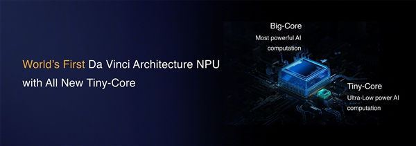 麒麟990继续集成NPU神经网络单元,并首次使用大小不同核心架构,其中大核基于和麒麟810和昇腾同样的达芬奇架构,拥有业界最强AI性能,负责高负载的AI运算,而小核叫做“微核”(Tiny Core),拥有极致低功耗,专门处理一些低负载的AI运算。