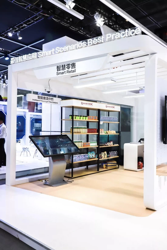 在展区现场,新华三集团重点展示了智慧零售、智慧医疗、智慧园区等不同领域的场景化解决方案。创新的产品、技术和方案吸引了众多嘉宾的驻足参观和深入了解。