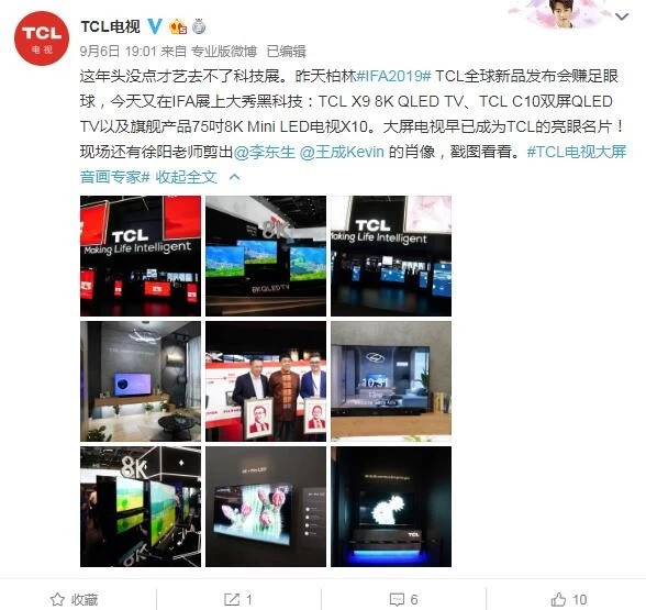 2019大会展示TCL X9 8K QLED TV、TCL C10双屏QLED TV及75吋8K Mini
