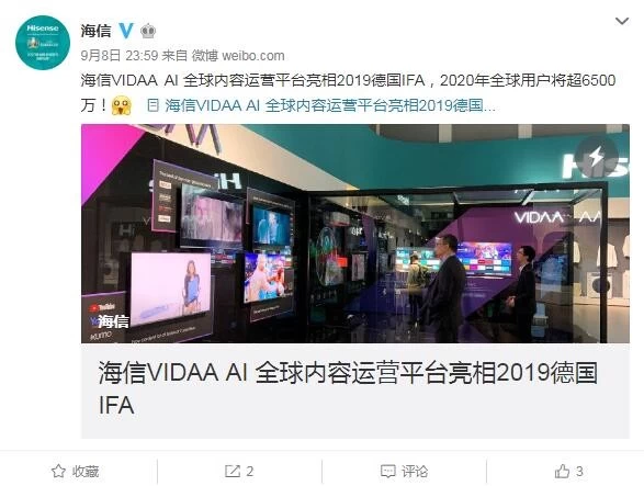 IFA 2019:海信VIDAA AI全球内容运营平台亮相