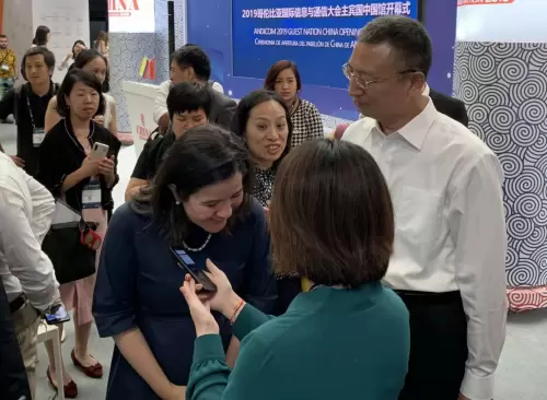 哥伦比亚通信部部长sylvla constain体验讯飞翻译机