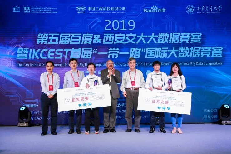 近年来,AI技术的地位愈显重要,世界各国对AI人才的培养也极为重视,高水准、强竞争性的国际赛事成为AI人才展示实力的舞台。9月11日,由联合国教科文组织国际工程科技知识中心(IKCEST)、中国工程科技知识中心(CKCEST)、百度、西安交通大学(以下简称西安交大)联合主办的第五届百度&西安交大大数据竞赛暨IKCEST首届“一带一路”国际大数据竞赛(以下简称竞赛)颁奖典礼在西安举行。“Primula&Orchid”团队与“海疯习习”团队共同获得本届竞赛特等奖。中国工程院院士潘云鹤、图灵奖得主Raj Reddy以及西安交通大学校长王树国、百度首席技术官王海峰等学界、业界顶级专家为获奖团队颁发奖金及证书。