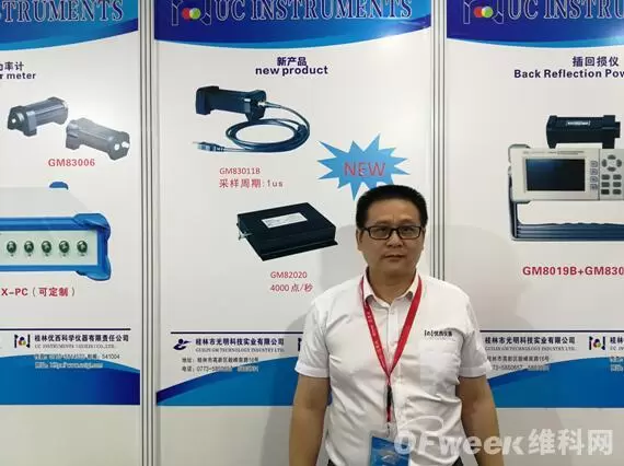 据桂林市光明科技/桂林优西科学仪器副总经理秦文忠介绍,桂林市光明科技/桂林优西科学仪器展示的拳头产品可调谐激光光源精度可达3pm,高精度的光功率计,精度可达0.02db。另外,光纤光栅解调仪也是光明科技此次展示的拳头产品。秦文忠对OFweek维科网小编表示:“该产品在光纤传感里面的稳定性、精度做得非常好,处于国内领先水平,已广泛应用于高铁、石油石化工程、地质桥梁等大型工程项目。”除此之外,光明科技/桂林优西还有很多优秀的产品,目前光明科技/桂林优西的光通信测试仪器,作为进口仪器的替代,已被大部分国内客户采用。由于拥有光通讯测试仪器基础,且品种类齐全,所以可以搭建各种各样的测试平台。