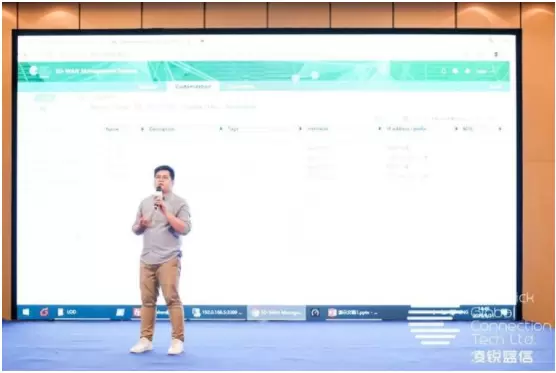 顾总为与会嘉宾介绍了凌锐蓝信目前产品线中的重要环节,睿智通iCONNECT,是一款主打企业内网多分支集中管控和链路优化功能的SD-WAN产品。