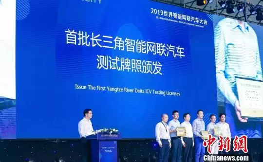 首批长三角测试牌照在沪颁发。供图当天大会上还正式颁发了首批智能网联汽车示范应用牌照,上海成为中国国内首个为企业颁发该项牌照的城市。获得示范应用牌照的企业可先行在城市道路中开展示范应用,探索智能网联汽车的商业化运营。