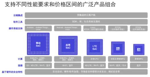 为此,高通专门成立了物联网事业群,将现有的连接和计算技术及解决方案进行了大量的重新组合和优化。目前之所以高通的SoC会在不同形态的新零售终端中百花齐放,也在于可以支持不同性能要求和价格区间的广泛产品组合,在产品主要以SoC的形式下,可以在手机处理器上做减法,为各个行业客制化SoC。例如从上图所示,OEM可以根据实际需求来选择支持的系统、连接能力、核心数量等,从而减少不必要的功耗和成本,最终推出精准定位、性价比最优的物联网产品。