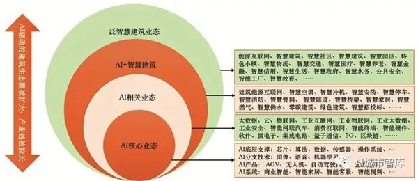 从图 3可清晰地看到,随着数字经济和智慧城市的发展,AI驱动的建筑生态圈正在被迅速扩大,建筑的产业链也正在被大尺度拉长。