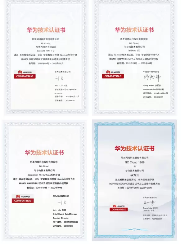 日前,用友已经完成了NC Cloud、A++等产品与华为IT基础设施如GaussDB数据库、华为云鲲鹏云服务等产品的适配工作。其中,用友NC Cloud更是通过OceanStor V5 KunPeng系列存储融合认证、TaiShan服务器认证、通过GaussDB 100 1.0 关系数据库认证,并完成华为云鲲鹏兼容性测试。