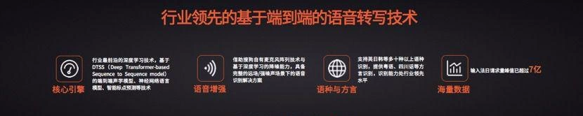 第三,个性化语音识别技术。语音转写时,关键词识别错误给用户体验带来的体验是糟糕的。搜狗通过打通输入法账号体系,基于产品中用户数据的使用习惯,自动挖掘用户的个性化词组,使用户常用语的转写错误率下降40%以上。