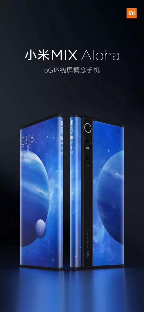 雷军表示,MIX Alpha是代表未来形态的概念型手机。在现场展示的概念图和视频中,MIX Alpha是一部由一块屏幕包裹了整个机身的手机,小米称之为环绕屏。