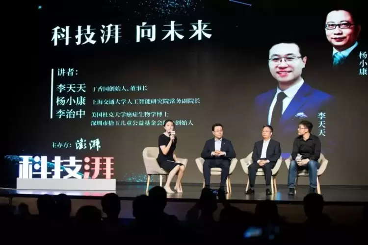 9月20日,由澎湃新闻主办的科技话题分享讲座“科技湃 向未来”在上海长江剧场举行。丁香园创始人及董事长李天天、上海交通大学人工智能研究院常务副院长杨小康以及美国杜克大学癌症生物学博士李治中分别从各自的领域出发,分享了科技赋能下未来生活的样子。
