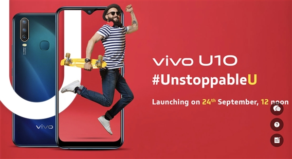 近日,vivo印度正式官宣了新机vivo U10,这款手机将于9月24日正式发布。