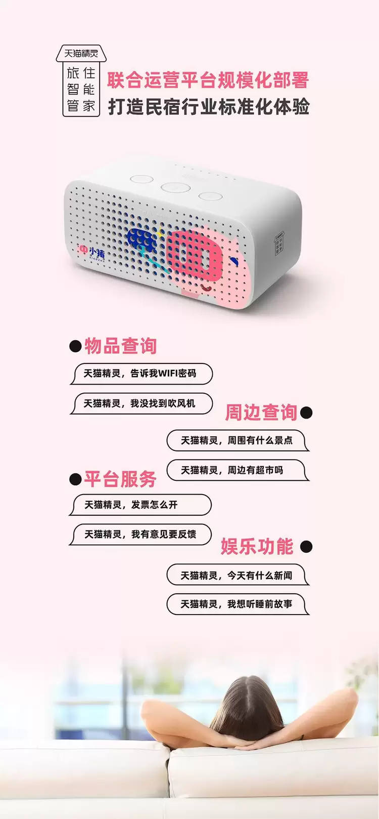 小猪智能设备负责人表示,天猫精灵旅住智能管家使得民宿经营和入住体验的闭环运转更加顺畅,房客、房东、平台都受益于先进技术手段的落地。天猫精灵方面负责人指出,与领先民宿平台的合作只是开始,天猫精灵将与各界伙伴一道,继续致力于用AI技术改善生活。