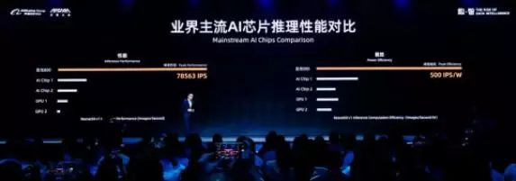 在业界标准的ResNet-50测试中,含光800推理性能达到78563 IPS,比目前业界最好的AI芯片性能高4倍;能效比500 IPS/W,是第二名的3.3倍。