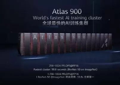 同时,还发布了一款重量级的产品——Atlas 900,这款产品汇聚了华为几十年的技术积累,是当前全球最快的AI训练集群,由数千颗昇腾处理器组成。
