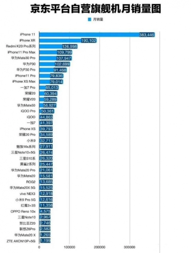 今年iPhone11系列一出售即引发整个市场抢购,暗夜绿一度断货,当前iPhone11系列销量依然在增长,苹果在持续向供应商追加订单。据京东自营旗舰机9月销量数据,iPhone 11以约38.3万台处于遥遥领先的位置,是第二名iPhone XR的2倍。