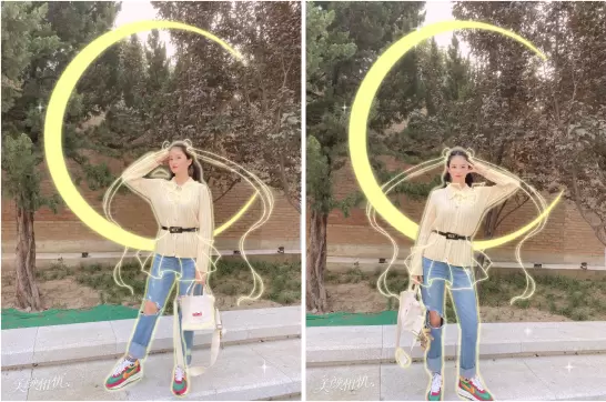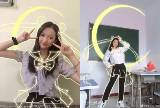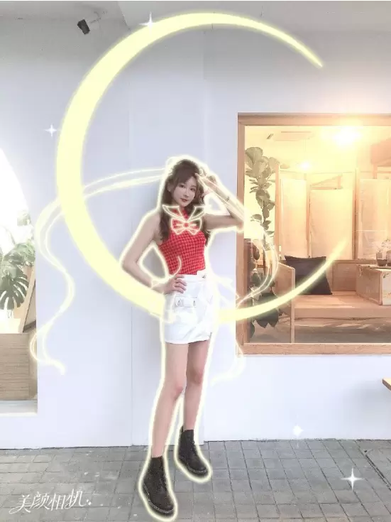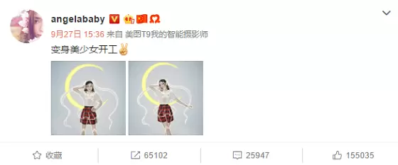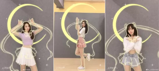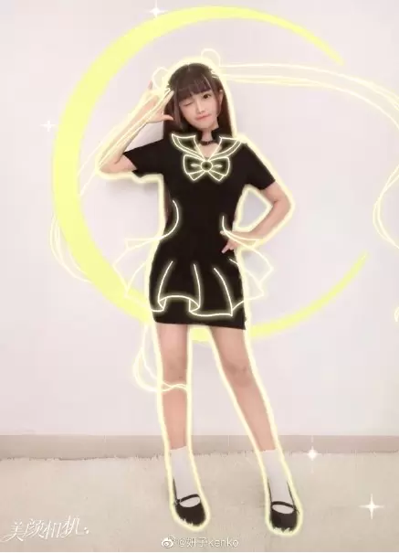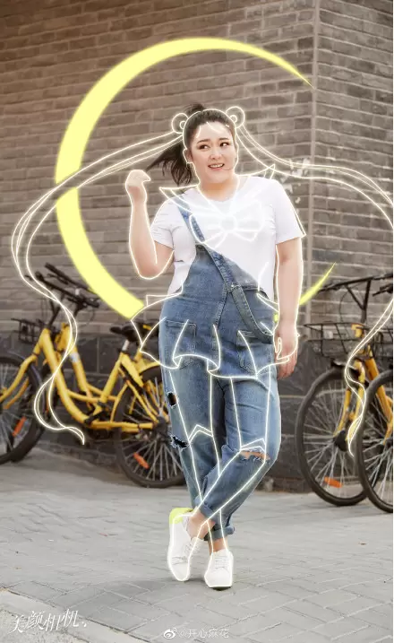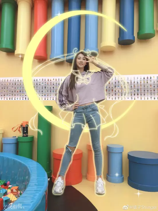 作为美少女死忠粉,女神Angelababy也亲自上场参与,在微博PO出两张美颜相机“全身照相馆-美少女”模板拍摄的美照,通过美颜相机AR技术为自己加上了美少女的月亮图标和经典发型特效,站姿及手势动作非常标准,少女感十足,并配文“变身美少女开工”,引得一票粉丝直呼“你就是美少女本美啊!”。
