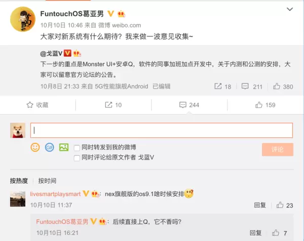 vivo作为国产大厂,在硬件设计和技术方面,近年来大放异彩。尤其是近来一口气推出两款5G旗舰,让我们十分激动。不过强悍的硬件也需要软件优化加持。近日vivo Funtouch OS项目经理葛亚男向网友们征集关于新系统的意见,网友们热烈讨论,也套出了不少干货。