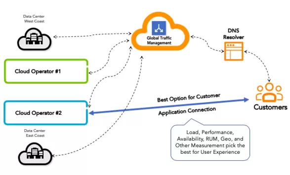 然而,当今的IT团队必须在整个互联网上部署和维护应用程序。应用程序继续存在于数据中心,新应用程序被推入云端,许多应用程序分布在CDN上。在某些情况下,企业将使用多个云运营商,某些应用部署将混合使用数据中心和云,也可能使用多个CDN网络。这就是“现代互联网复杂性”,它仍然需要负载平衡、地理平衡和性能监控,但今天的要求更加复杂。因此,想与现代互联网的复杂性相匹配,企业就需要把GSLB从数据中心转移到云中。