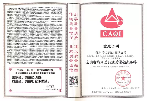 近日,萤石积极响应中国质量检验协会开展的“企业质量诚信倡议”专题活动,被授予“全国质量信用先进企业”、“全国智能家居行业质量领先品牌”、“全国质量诚信标杆企业”等三大荣誉。