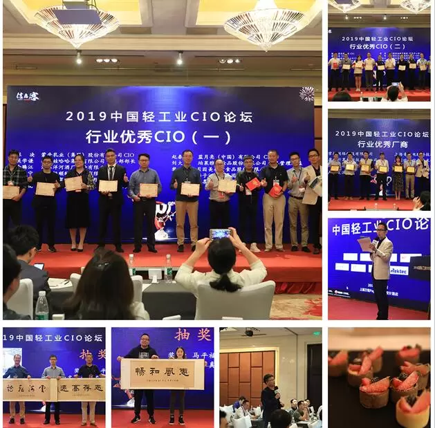 下午会议结束后,组委会表示感谢,感谢在所有嘉宾支持和主持人的带领下,我们济济一堂,认真听讲,同期,我们举行2019中国轻工业CIO论坛暨轻工业数字化创新展晚宴及颁奖典礼,颁奖嘉宾分别是梦金园珠宝集团信息总监黄总颁发给获奖优秀厂商,Coremail论客上海分公司总经理王琪、以及苏州百捷信息科技技术部领导颁发给获奖优秀CIO们,颁奖结束后,直接进入“拉萨产业交流中心”独家赞助的晚宴交流。