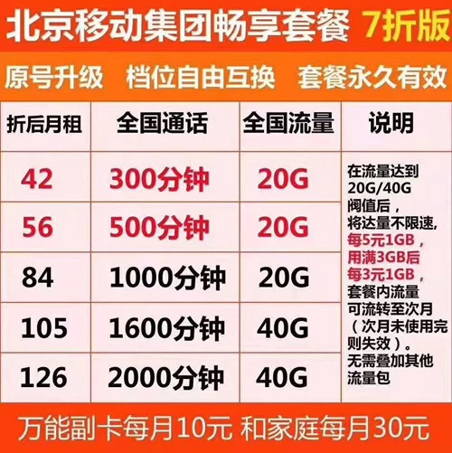 另外,中国移动免费赠宽带优惠也一去不复返。其58元以下手机套餐已经取消免费宽带赠送业务,如28元及以下4G套餐目前要办理100MB宽带需要缴纳每个月40元的费用,包年不低于400元/月,200M宽带月费不低于60元/月,包年宽带不低于600元,300M宽带月费不低于80元/月,包年宽带不低于800元。而58元的4G套餐要办理100MB宽带则需要次年每月扣话费40元;要办理138元的4G套餐,则还可以免费享受两年的200MB宽带。