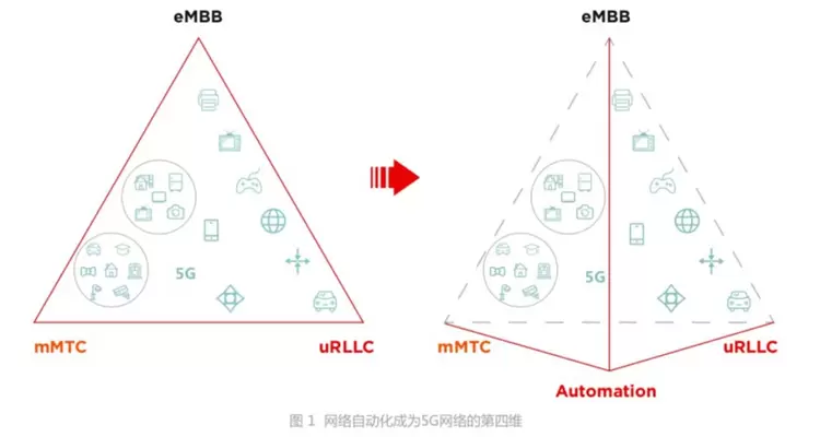 在《智能自治网络案例报告》白皮书的规划中写到,自动化网络运营能力,将成为5G时代除eMBB、mMTC、URLLC之外不可缺少的第四维,成为5G业务创新和发展最重要的推动力量之一。