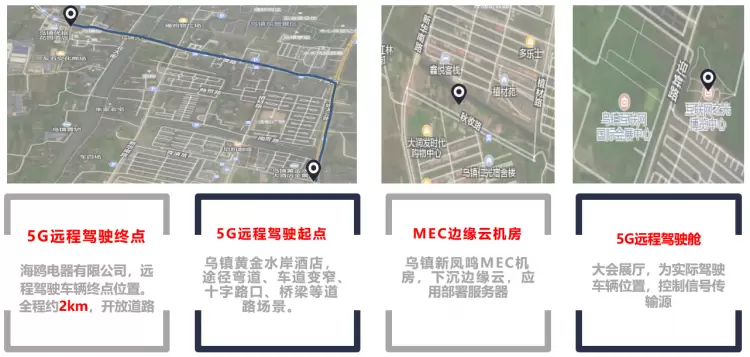 项目是在乌镇真实的复杂开放道路下的5G远程驾驶。乌镇房屋建筑整体处于老城状态,低矮且密集,演示路线中包括直道、十字路口、桥梁、车道变窄等道路场景,在5G高带宽、低时延等指标下,对5G信号的稳定性也极具考验,同时也验证了整体5G远程驾驶的可行性。