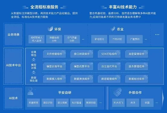 全流程服务标准输出。 从数据标注到模型训练,再到技术能力产品化输出,提供全流程、标准化AI技术能力服务,标准化匹配不同客户及业务场景。