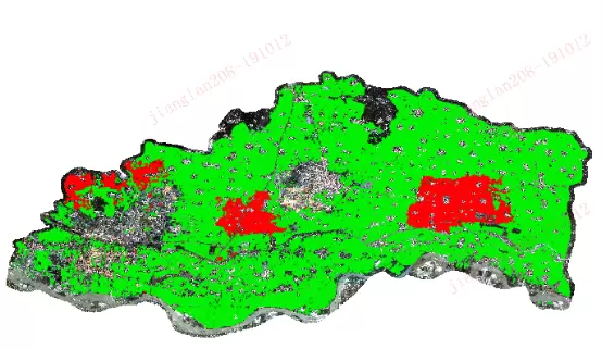 图3 河南原阳作物识别效果,绿色为玉米,红色为水稻